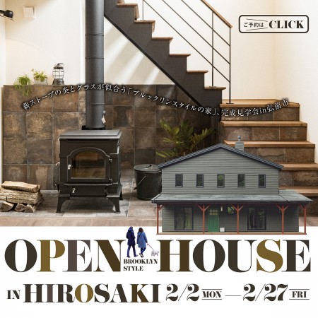 薪ストーブの炎とグラスが似合う「ブルックリンスタイルの家」完成見学会in弘前市