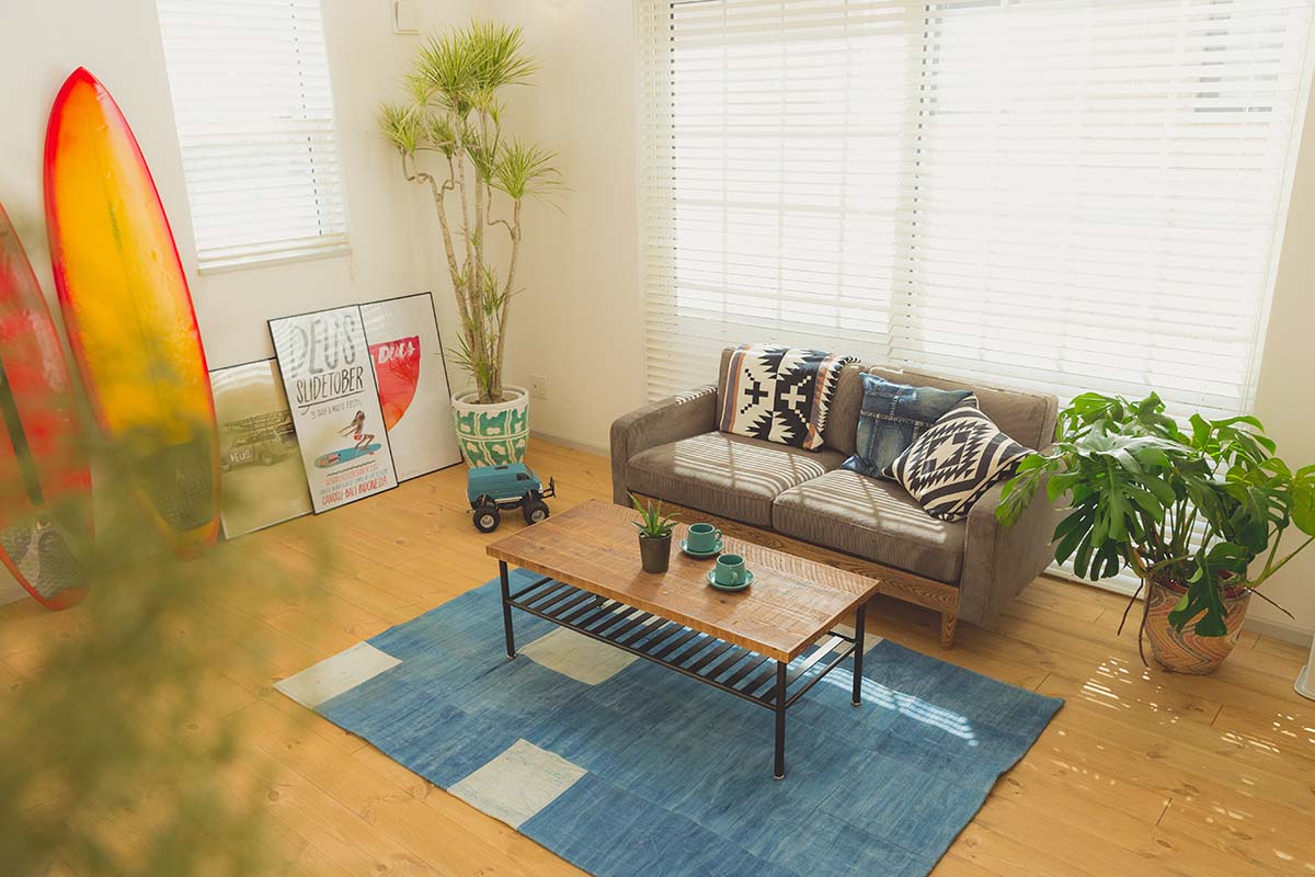 リビングに入る光と風がなんとも爽やかで気持ちよく、気分はまるで西海岸の避暑地。
