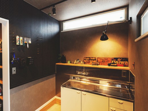 ・旦那様の趣味の釣りスペースを設け、持ち込みのシンクを採用
