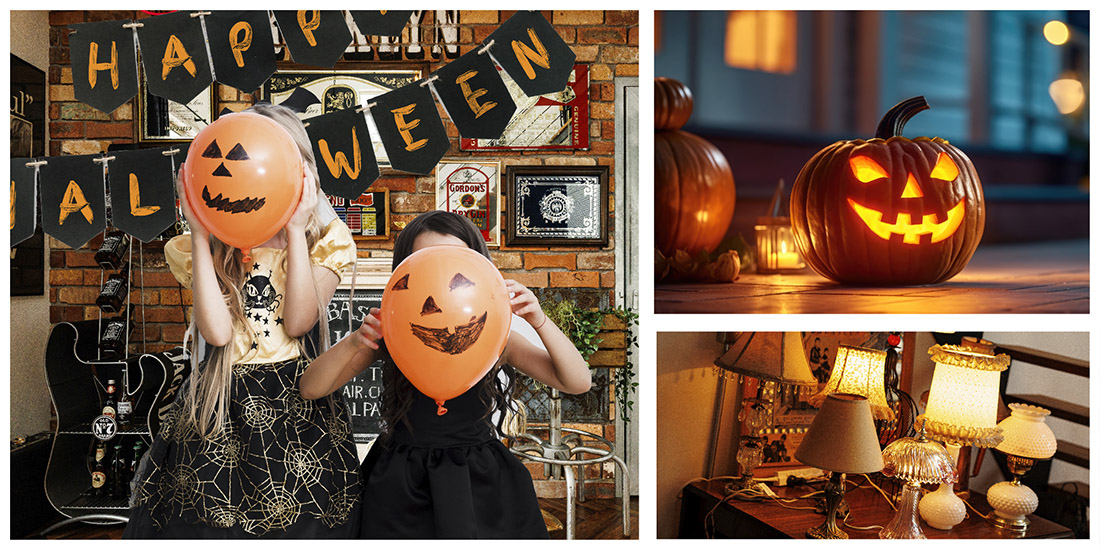 ジャック・オー・ランタンやコウモリのシルエットなど、20種類以上のフォトプロップスをご用意。