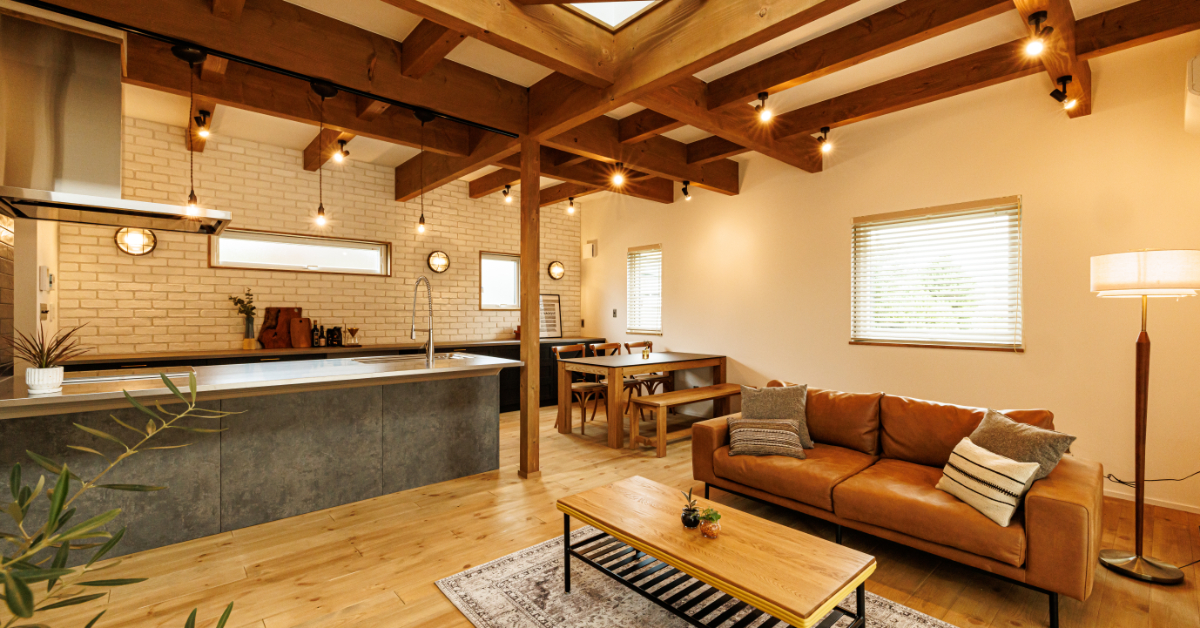 LDKは勾配天井を採用し、26坪の平屋でも開放感のある空間に。