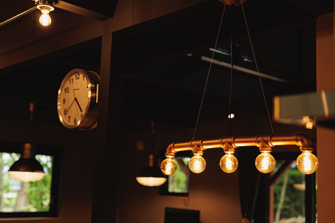 ・リビングには露出配管。お打合せを重ね、こだわりの配置や角度を実現。