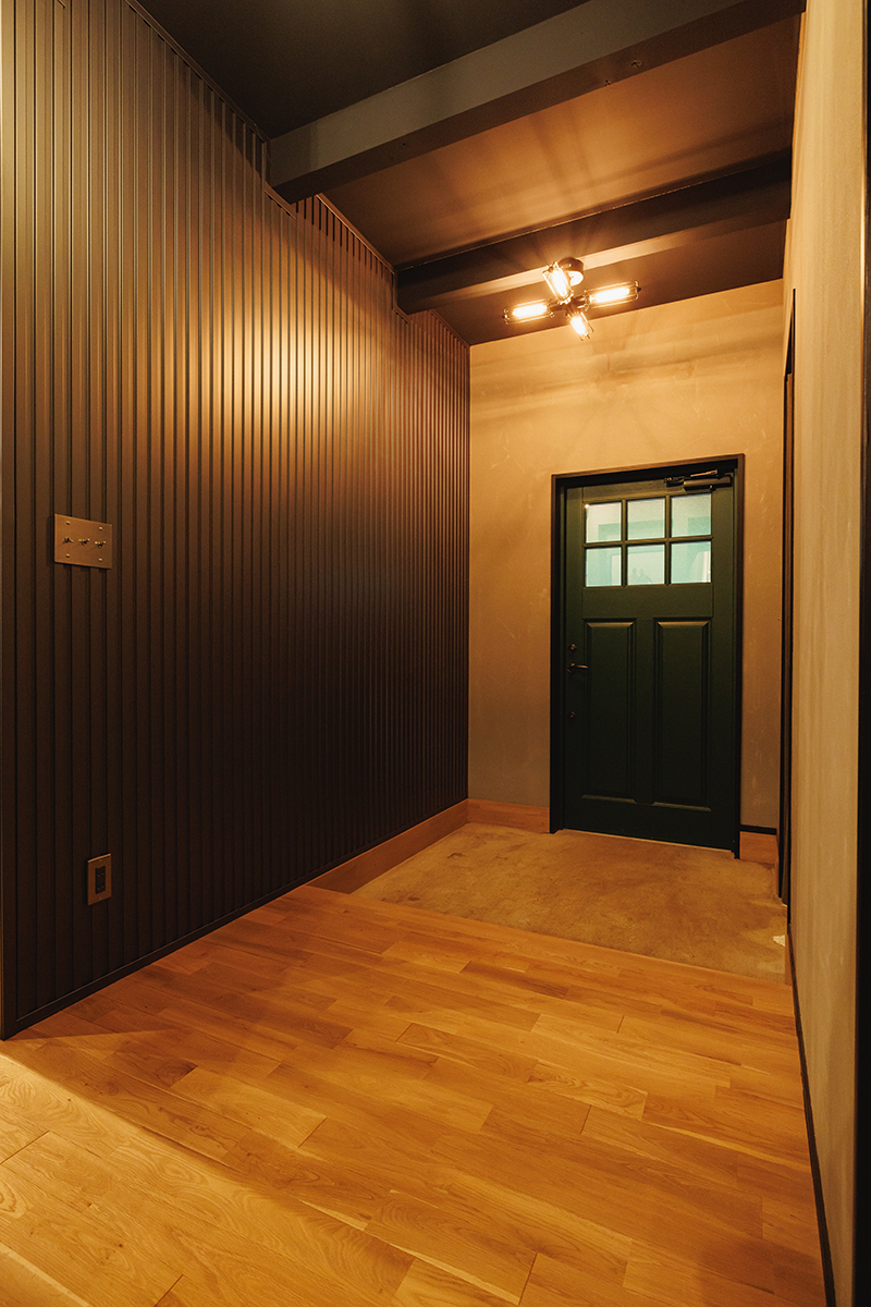・広々3帖の土間は、アウトドアグッズやロッカーを置いて魅せる収納に。