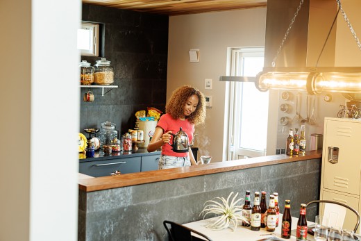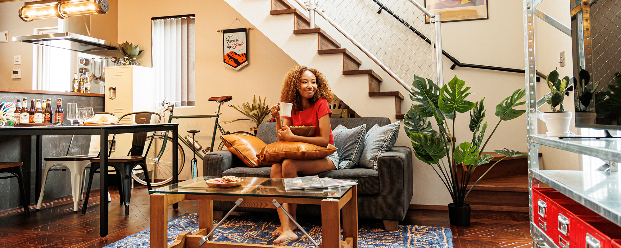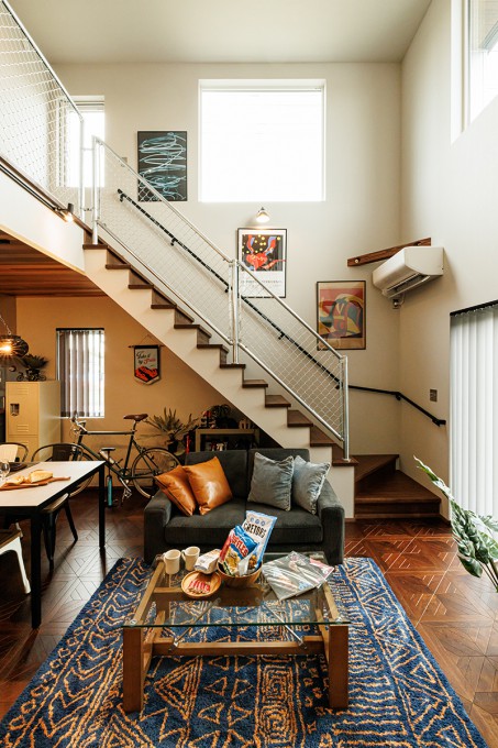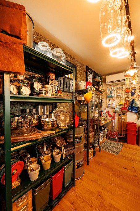インテリアもオールドアメリカン雑貨とスタイリッシュ感のバランスが取れた空気感は、洗練された自由で遊び心ある空間に。多趣味な暮らしのイメージにもぴったり。